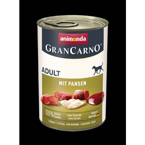 Animonda GranCarno Adult (pacal) konzerv - Felnőtt kutyák részére (400g)A GranCarno® Adult a kiegyensúlyozott, finom, egészséges táplálkozást jelenti a legmagasabb szinten 1-6 éves felnőtt kutyák számára. A válogatott, friss hús összetevők garantálják azt a páratlan ízt, amelyet a kutyák annyira értékelnek. A GranCarno Adult minden szükséges tápanyagot biztosít a felnőtt kutyának.