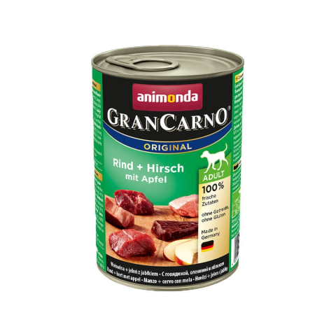 Az Animonda GranCarno Adult konzerv, sertés és szarvas hússal egy teljesértékű, nedves kutyatáp felnőtt kutyák számára.