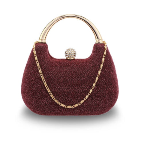 Erszény alakú lila színű alkalmi táska, különleges, kristályokkal kirakott gombbal. Vállpántja levehető. Apró mérete miatt a nagyobb mobiltelefon nem fér el benne.