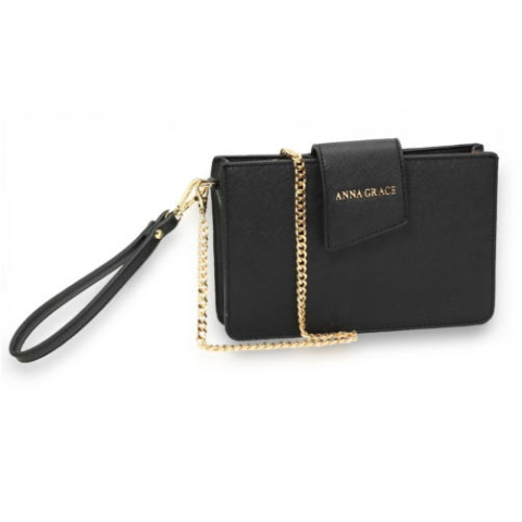 Elegáns válltáska lánc vállpánttal, mágneses zárral. A fedél elülső részén az Anna Grace márkanév látható. Belső tere biztonságosan, cipzárral zárható. A láncból készült vállpánt eltávolítható, és így a csuklón is viselhető a táska.