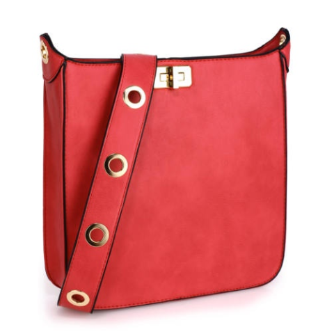 Ennek a piros oldaltáskának különlegességge az arany színű karikákkal ellátott állítható vállpántja. A táska belseje bélelt, és zsebekkel ellátott, így könnyen tudod rendszerezni benne a dolgaidat.