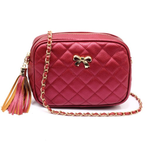 A divatos lányoknak készült ez az elegáns válltáska, melyet az aranylóan csillogó díszítés és a csillogó, fémes vállpánt tesz egyedivé. Bár kívülről kicsi, mégis bőséges helyet biztosít: fő rekesze mellett 1 cipzáras és 2 nyitott zsebe is van, melyek megkönnyítik a rendszerezett elpakolást.