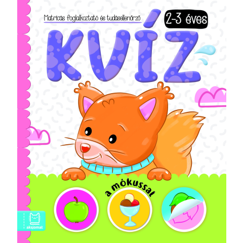 A matricás kvízkönyvek jó lehetőséget adnak arra, hogy játékos formában ellenőrizzük a gyermekünk tudását. A kicsi válaszol a feltett kérdésre és felragasztja a matricákat. A helyes válaszmatricájának az alapszíne ugyanolyan, mint a fenti sarokban játszó állat labdájának a színe.