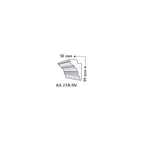 KA-23/K/RV szegélyléc oldalfali rejtett világításhoz LED szalagos rejtett világítás készítésére. A polisztirol és a LED világítás kis súlya miatt a viszonylag kis ragasztási felületű díszlécek is stabilan rögzíthetőek az oldalfalon.