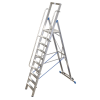 Két oldalt járható alu létra 2x7 a kétoldalas hozzáférésű lépcsős létrák számos munkához használhatók bel- és kültéren egyaránt csúszásgátló futófelületek háztartási használatra A létra könnyű, stabil és könnyen tárolható 2 biztonsági rögzítő pánt 80 mm