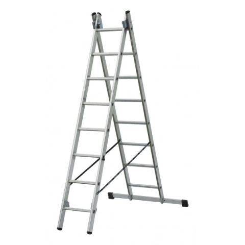Többcélú alu létra 2x15 P 4050/6910/3634 P kétrészes létra, nem csak barkácsolóknak, hanem szakembereknek is alkalmas kétrészes alumínium többcélú létra, amely lépcsős létraként, támaszkodó és hosszabbító létraként használható acél zsanérok, amelyek le