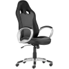 Egyedi, sportautó ülésre emlékeztető forma. Magas háttámla. Mesh puha poliuretán textilbőr kárpitozású ülőlap és háttámla. Ezüstszínű műanyag karfa kárpitozott támfelülettel. Állítható rugózási keménységű hintamechanika. Gázliftes magasságállítás. Ezüstsz
