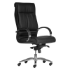 Kiváló minőségű valódi bőr ülésű fekete fotel magas háttámlával. Polírozott alumínium karfa, kárpitozott támfelület, multiblock hintamechanika, krómozott gázlift, krómozott lábkereszt d.640, d.50 görgők. Teherbírás: 130 kg A terméket alapesetben dobozban,
