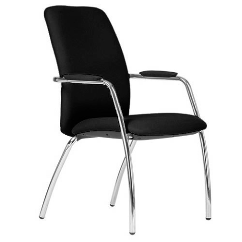Krómozott acél vázú tárgyalószék magas háttámlával. Műanyag karfa, műanyag háttámla- és ülőlap burkolat. Rakásolható: 3 db-ig. Teherbírás: 110 kg. .