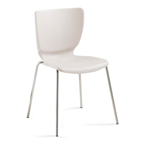Krómozott vázú, műanyag kagylóülésú tárgyalószék. Választható színek: fehér, fekete, kék, szürke, világoszöld. Rakásolható. Teherbírás: 110 kg. .