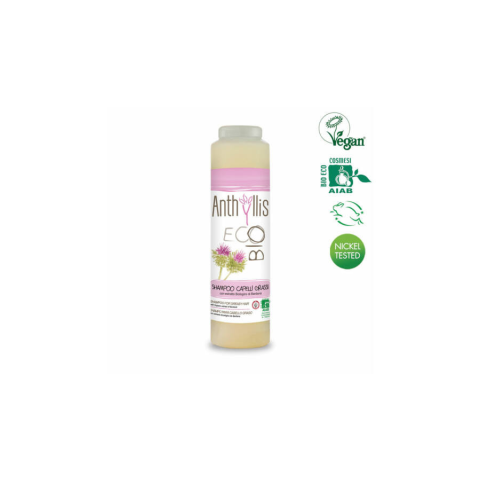 Anthyllis bio sampon zsíros hajra 250 ml AIAB által tanúsított hajsampon zsíros hajra és fejbőrre bojtorjánnal. Természetes hatóanyagokkal, melyeknek köszönhetően kíméletes a hajhoz. Bojtorján kivonatban gazdag, mely jól ismert faggyútermelés szabály