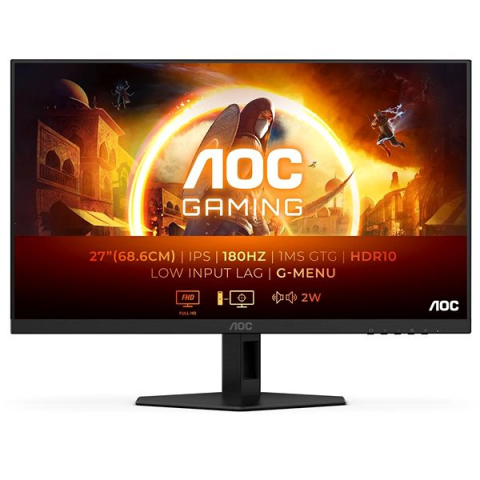 Monitor - IPS, Full HD, 1920 × 1080 (16:9), 180 Hz, tükröződésmentes kijelző, 8 bit, 1 ms, G-Sync, HDR, hangszórók, HDMI és DisplayPort, VESA Merülj el kedvenc játékaidban szabványos Full HD (1920 × 1080) felbontásban a kiváló 27" AOC LCD képernyővel! A sima kép érdekében IPS panelt kínál 180 Hz képfrissítési gyakorisággal és 1 ms válaszidő