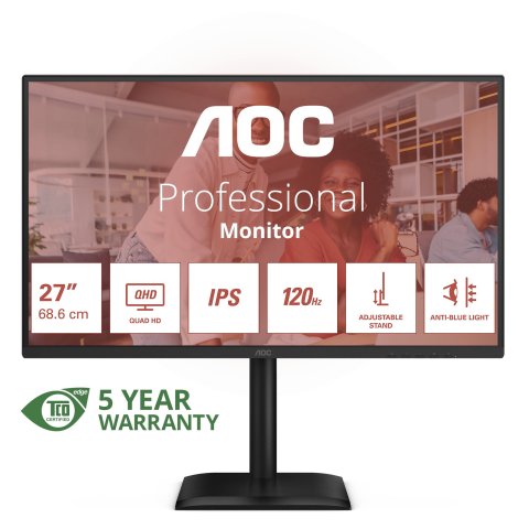 16:9, 2560x1440, 27", QHD, LED, IPS, 120Hz, 4ms, 1500:1, 350cd/m2, DP, 1xHDMI, 4xUSB3.2, Black, Állítható magasság, Pivot