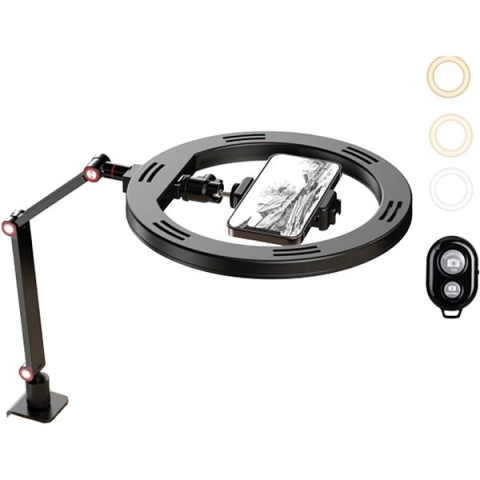 Apexel Clip Flexible Desk stand with ring light for overhead photography