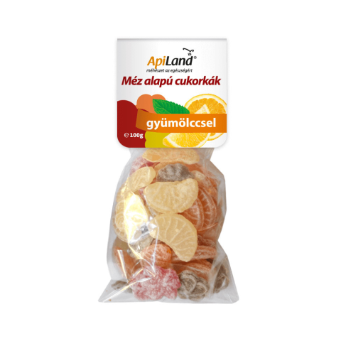 Apiland mézes és gyümölcsös cukorkák 100 g Kiváló erősítő gyermekek, terhesek és lábadozók számára Könnyen felszívodik a szervezetben Csillapítja a köhögést Egyensúlyba tartja az emésztési folyamatot Hozzájárul a fáradtság leküzdéséhez