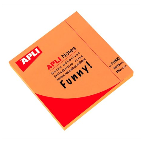 1 kép APLI 75x75mm újrahasznosított jegyzettömb - Neon narancssárga (100 lap / tömb) (11900)