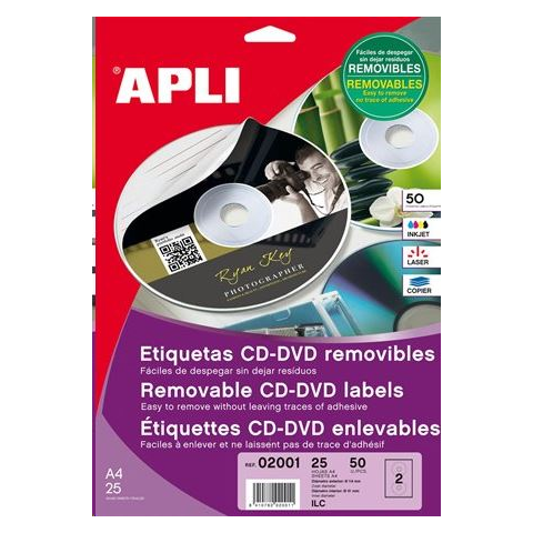 APLI CD/DVD etikett, A4 matt, eltávolítható 50 darab  (LCA2001) (LCA2001) etikett 1 kép