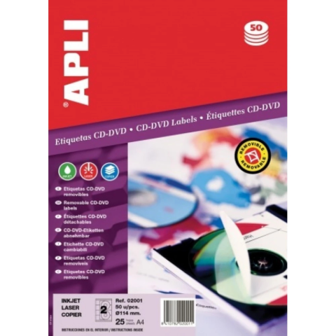 1 kép APLI Eltávolítható CD/DVD-címke, külső átmérő 114 mm, belső átmérő 41 mm