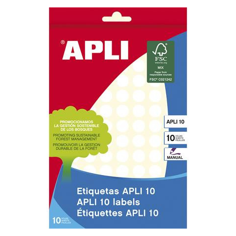 Etikett, 10 mm kör, kézzel írható, APLI, 1260 etikett/csomag - kézzel írható - hosszantartó tapadás - tartós színek - megkapta a PEFC tanúsítványát, megfelel a nemzetközi fenntartható erdőgazdálkodás köveleményeinek - megkapta az FSC (Felelős Erdőgazdá