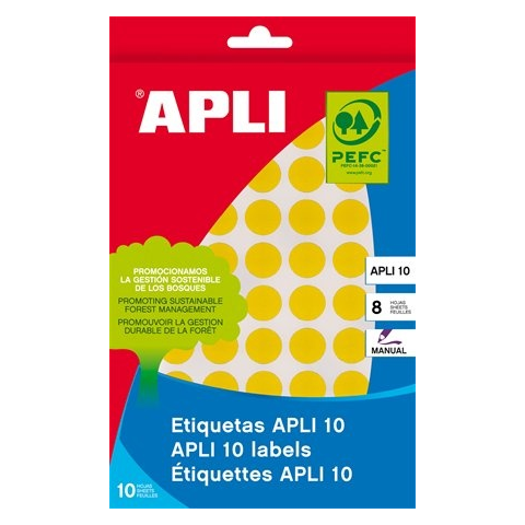 APLI Etikett, 10 mm kör, kézzel írható, színes, , sárga, 1008 etikett/csomag etikett 1 kép