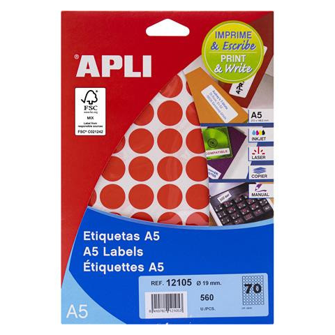 1 kép APLI Etikett 19mm kör 560 etikett/csomag APLI piros