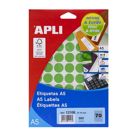 1 kép APLI Etikett 19mm kör 560 etikett/csomag APLI zöld