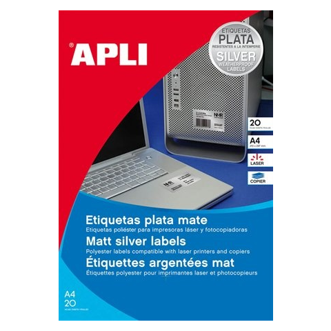 1 kép APLI Etikett, 210x297 mm, poliészter, időjárásálló, APLI, ezüst, 20 etikett/csomag