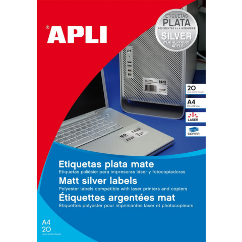 Elegáns megjelenésű fémes felületű Apli metál etikett többcélú felhasználásra poliészterből. Használható papír-, karton-, műanyag-, üveg- vagy akár fémfelületen is. Az ezüst színű címkék nagyon népszerűek a technológiai eszközökre vonatkozó informáci