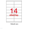 Univerzális fehér etikett címkék. Többféle kiszerelés: 25, 100 és 500 lap. Lézernyomtatókban, fénymásoló gépekben és tintasugaras nyomtatókban használható. Megkapta az FSC (Felelős Erdőgazdálkodás Tanácsa) tanúsítványt, megfelel a környezettudatos gyártá