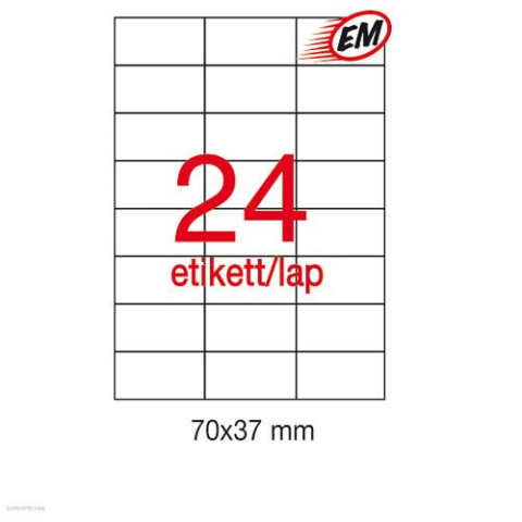 Univerzális fehér etikett címkék. Többféle kiszerelés: 25, 100 és 500 lap. Lézernyomtatókban, fénymásoló gépekben és tintasugaras nyomtatókban használható. Megkapta az FSC (Felelős Erdőgazdálkodás Tanácsa) tanúsítványt, megfelel a környezettudatos gyárt