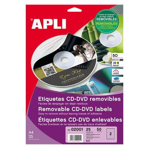 APLI Etikett, cd/dvd, a4, matt, eltávolítható, apli 02001