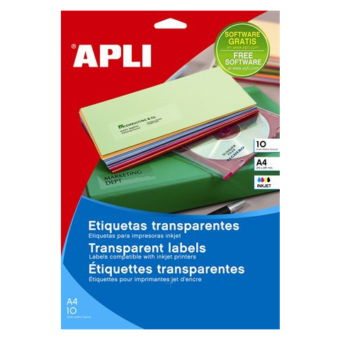 Magasfényű, átlátszó, tintasugaras nyomtatókban használható. Ingyen letölthető APLI Soft etikett-nyomtató szoftver: www.apli.hu .