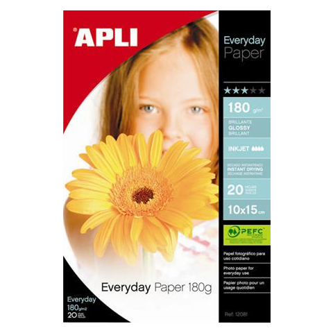 APLI fotópapírok a minőségi képi megjelenéshez! -mindennapi használatra -A4-es hordozón és méretben -180 g / m2 papír, fényes kivitel -a különböző rétegeknek köszönhetően a nyomtatott kép fényesebb és élesebb -különösen ajánlott digitális fényképezőgépekről való nyomatáshoz -fényképminőségű dokumentációk, plakátok, szórólapok és hirdetmények nyomtatására -tintasugaras nyomtatókban használható -FSC tanúsítvánnyal rendelkezik Gyártó/el
