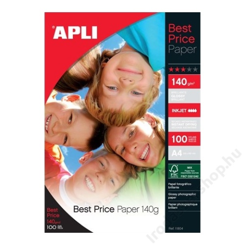 Fotópapír, tintasugaras, A4, 140 g, fényes, APLI Best Price (LEAA11804) APLI fotópapírok a minőségi képi megjelenéshez! - Bestprice fotópapír - A4-es méretben - 140 g / m2 papír, fényes kivitelben - a különböző rétegeknek köszönhetően a nyomtatott kép