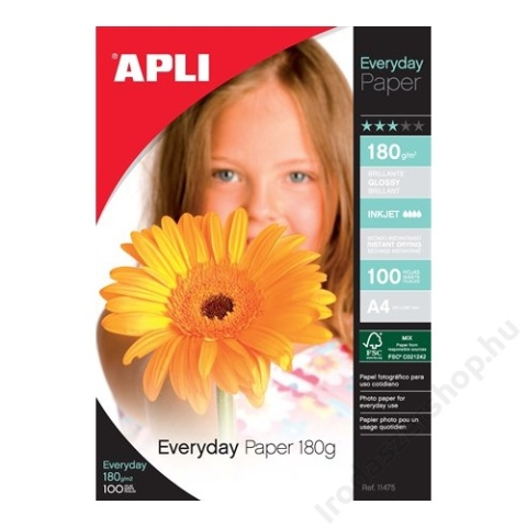 Fotópapír, tintasugaras, A4, 180 g, fényes, APLI Everyday (LEAA11475) APLI fotópapírok a minőségi képi megjelenéshez! -mindennapi használatra -A4-es hordozón és méretben -180 g / m2 papír, fényes kivitel -a különböző rétegeknek köszönhetően a nyomta