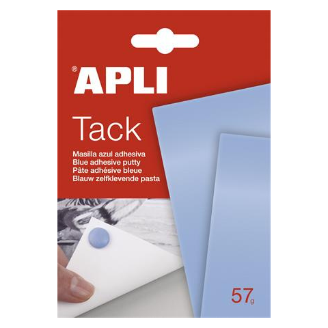 Gyurmaragasztó, 57 g, APLI Tack, kék -otthoni, irodai vagy iskolai felhasználásra -alkalmas fotók, plakátok, rajzok vagy egyéb dekorációk rögzítésére -oldószermentes -könnyen visszaszedhető -a csomag egy lapot tartalmaz, amelyből könnyen letéphető