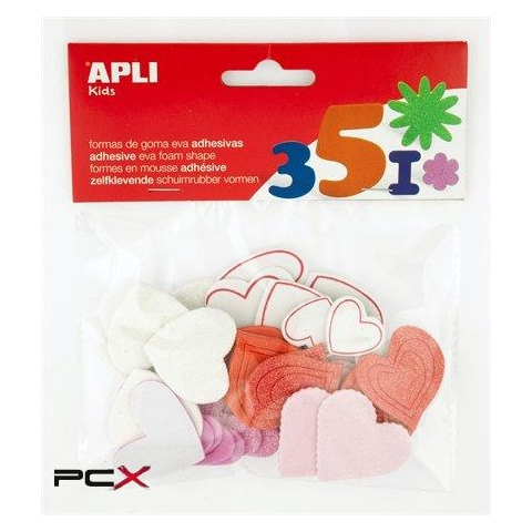 APLI Moosgumi, öntapadó, szívek, APLI "Eva Sheets", vegyes színek