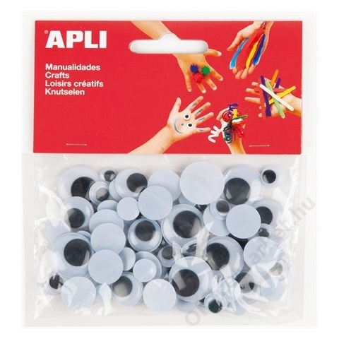 Mozgó szem, kör, APLI Creative, fekete-fehér (LCA13058) - 4 különböző méret: 10 db 20 mm, 20 db 15 mm, 25 db 10 mm, és 20 db 8 mm átmérőjű szem - fekete-fehér színben - tökéletesen használható bármilyen típusú kézműves tevékenységhez Gyártó/első EU fo