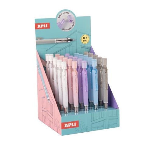 1 kép APLI Nyomósirón display, 0,7 mm, hegyezővel, rázós, APLI, vegyes színekben, 25 db