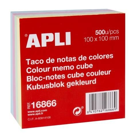 APLI Öntapadó jegyzettömb, 100x100 mm, 500 lap, APLI, pasztel