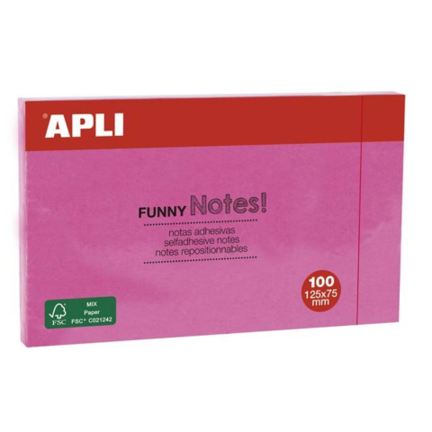 Öntapadó jegyzettömb, 125x75 mm, 100 lap, APLI, pink (LNP15003) - üzenethagyásra ideális az irodában és otthon - kiváló tapadás - mérete : 125x75 mm - pink színű - megkapta az FSC (Felelős Erdőgazdálkodás Tanácsa) tanúsítványát, megfelel a környezettu