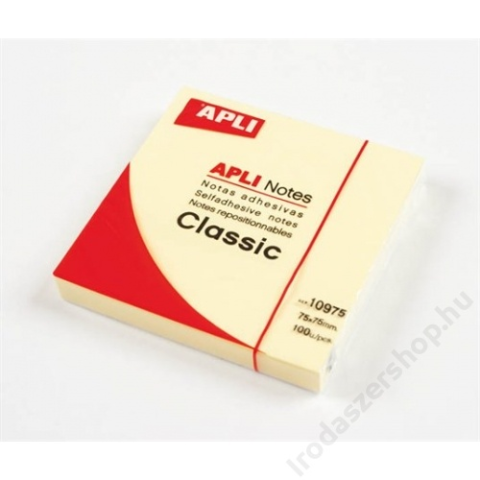 1 kép APLI Öntapadó jegyzettömb, 75x75 mm, 100 lap, APLI, sárga (LNP10975)