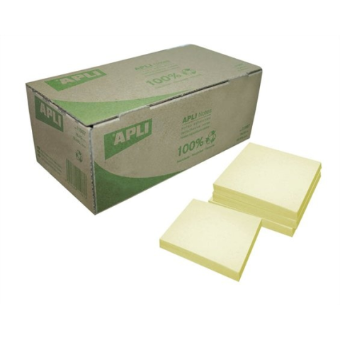 1 kép APLI Öntapadó jegyzettömb, 75x75 mm, 100 lap, újrahasznosított, APLI, sárga