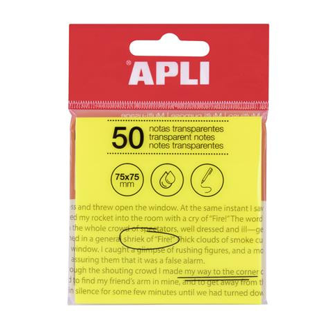 1 kép    APLI Öntapadó jegyzettömb, átlátszó, vízálló, 75x75 mm, 50 lap, APLI, sárga