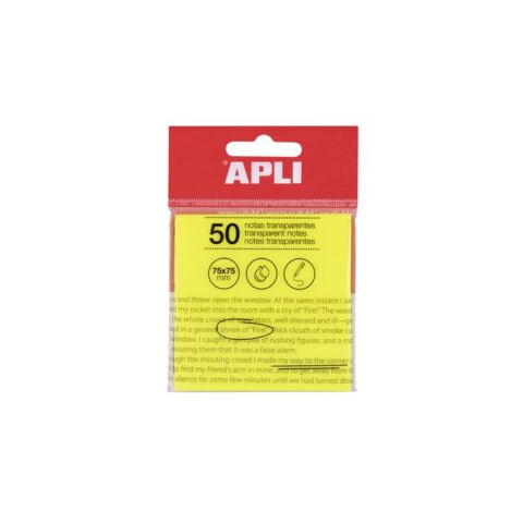 Öntapadó jegyzettömb, átlátszó, vízálló, 75x75 mm, 50 lap, APLI, sárga - LCA19569 - Jelölőcímkék - Emelje ki a legfontosabb információkat vagy karikázza be a szöveget, anélkül hogy összefirkálná az oldalt. -átlátszó, így könnyen olvasható az alatta lévő s