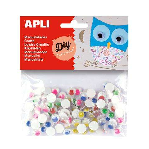 Öntapadó mozgó szem, kör, APLI Creative, vegyes színek - öntapadó mozgó szemek zöld, kék, piros és sárga színekben - 10,5 mm-es átmérő - tökéletesen használható bármilyen típusú kézműves tevékenységhez Gyártó/első EU forgalmazó elérhetősége: APLI PAP