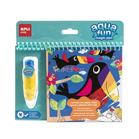 Színezőfüzet, vízbázisú, APLI Kids Aqua Fun, dzsungel APLI Kids: színezz a víz erejével! Színezőfüzet vizes ecsettel való színezéshez, a dzsungel állataival. - varázsszínező: csak töltsd meg a tollat vízzel, színezd ki a lapokat és előbújnak a színe