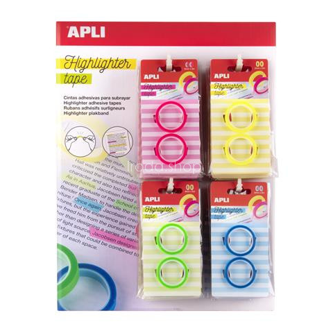 Szövegkiemelő szalag display, 32 db, APLI, különböző színekben Emelje ki a legfontosabb információkat újra és újra ezzel a szövegkiemelő szalaggal, anélkül hogy sérülne a papír. -átlátszó, így könnyen olvasható az alatta lévő szöveg -segítségével egys