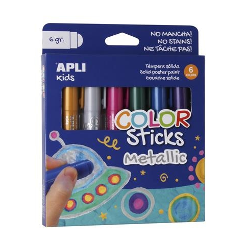 1 kép APLI Tempera stift készlet, toll alakú, "Kids", 6 különböző metál szín