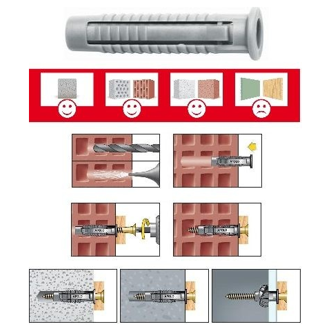 Használható betonba, terméskőbe, üreges betonba/téglába, Ytongba. 4 irányú terpesztés a tökéletes rögzítésért. Elfordulásgátló szárnyak, melyek magakadályozzák a tipli furatban történő elforgását. Széles gallér, mely megakadályozza az olyan kényes anyag